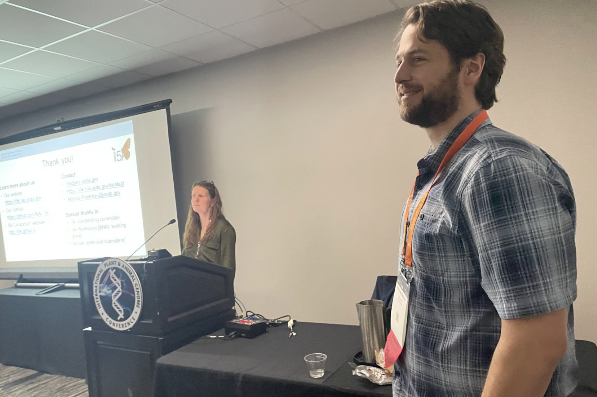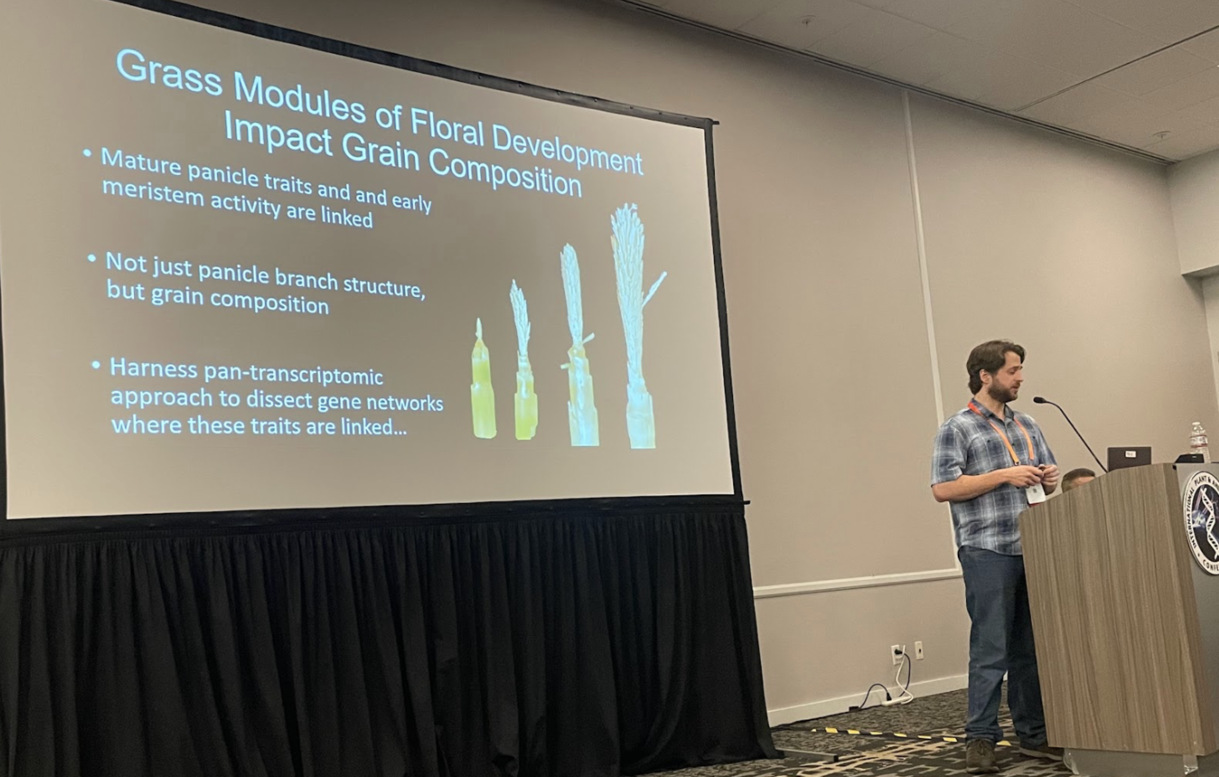 Dr. Nicholas Gladman, a USDA scientist at Cold Spring Harbor Laboratory , also presented a talk (“Sorghum Pan-Genomic Resources Reveal Novel Genetic Networks for Trait Discovery”). His talk highlighted research on understanding the developmental biology of sorghum inflorescence architecture and how to use public resources like SorghumBase to improve similar research programs